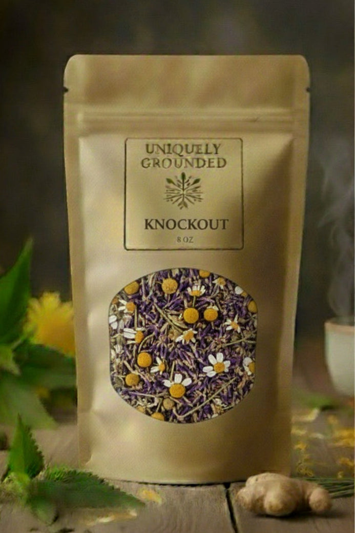 Drift into a restful night with our Knockout Herbal Tea Blend. Carefully crafted with calming herbs traditionally used to soothe the nervous system, reduce stress, and promote deep, restorative sleep, this blend helps you relax naturally without harsh chemicals. Perfect for those struggling with insomnia, racing thoughts, or a busy, overstimulated mind.